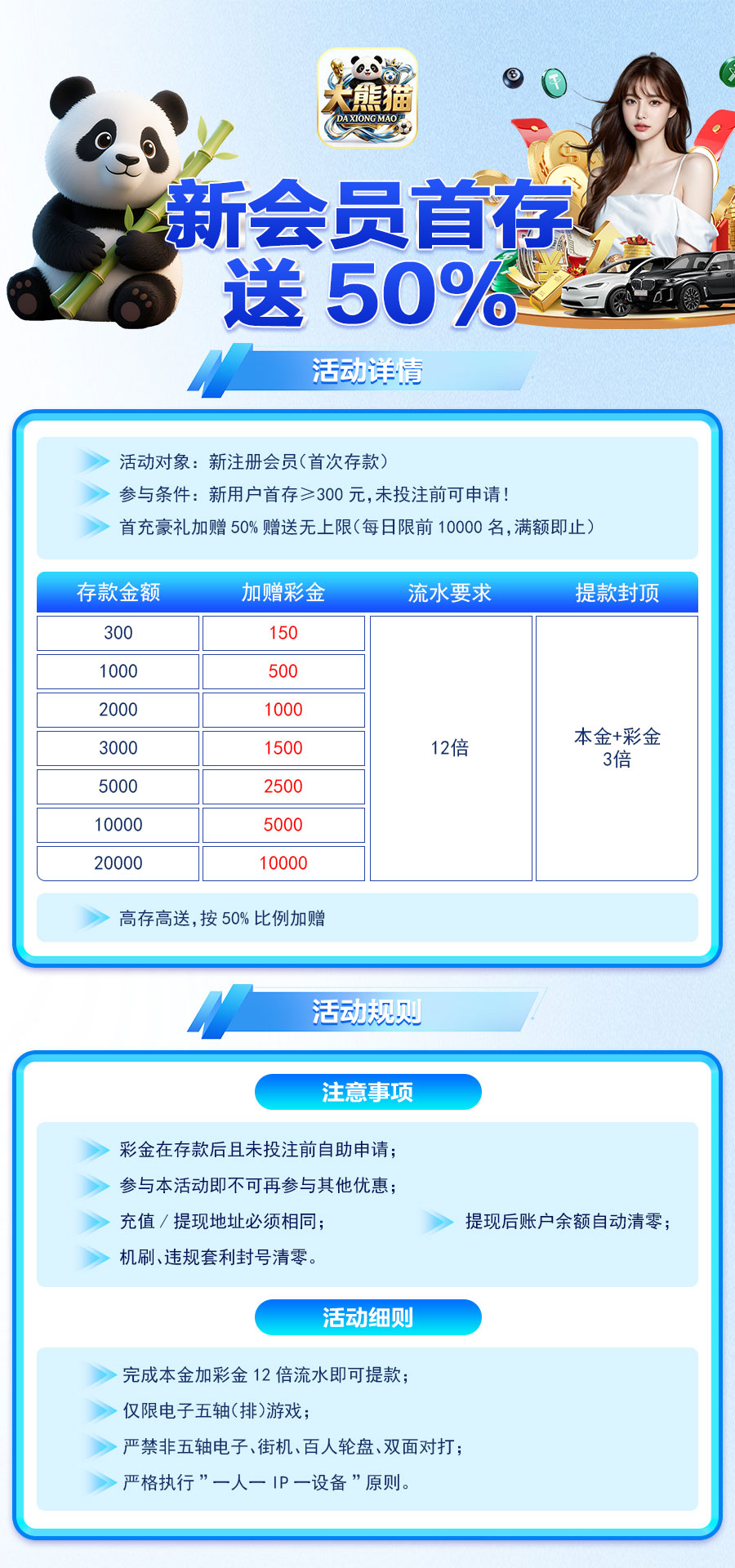 新用户存送50%优惠大厅自助领取(具体规则看图)