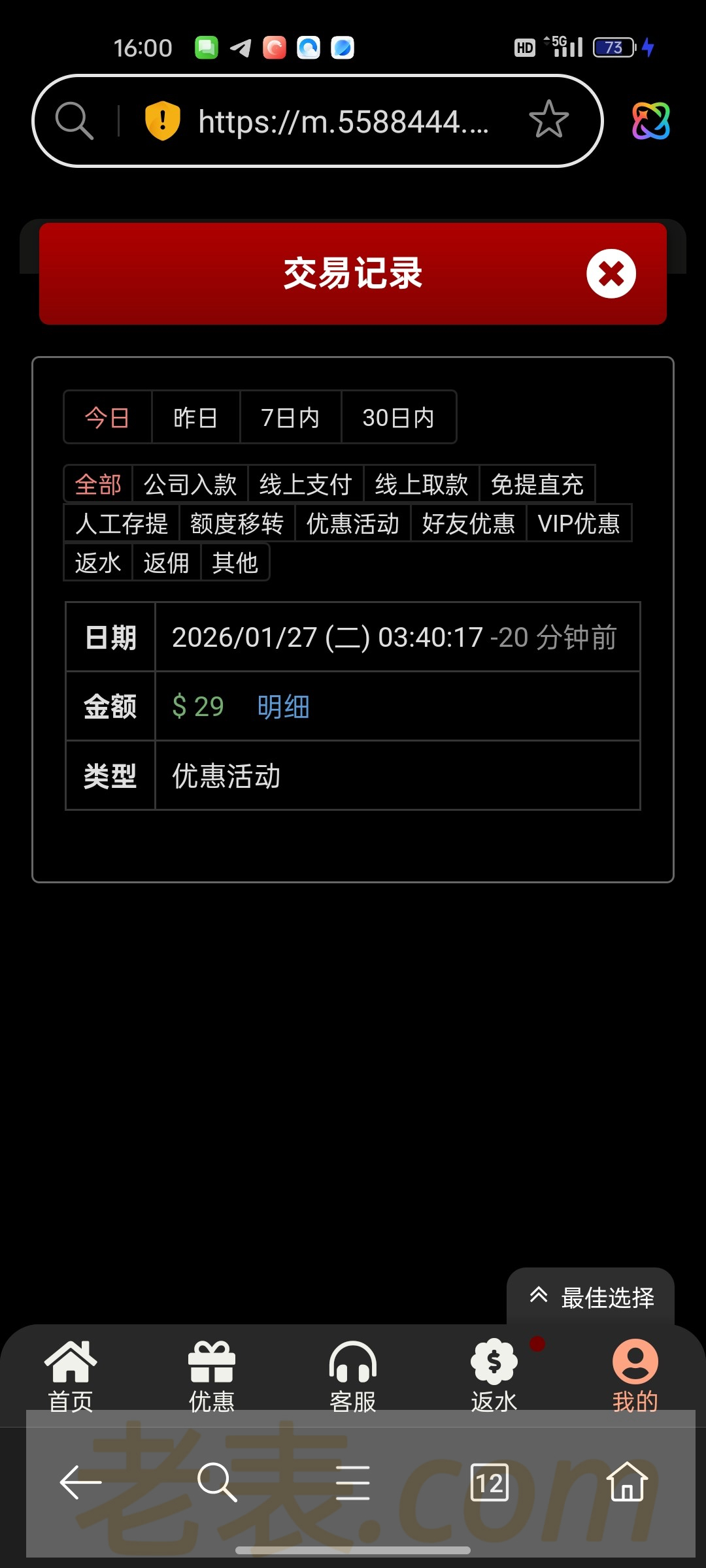 特邀注册账号秒送的,打电话来的我没有打出来不建议充值