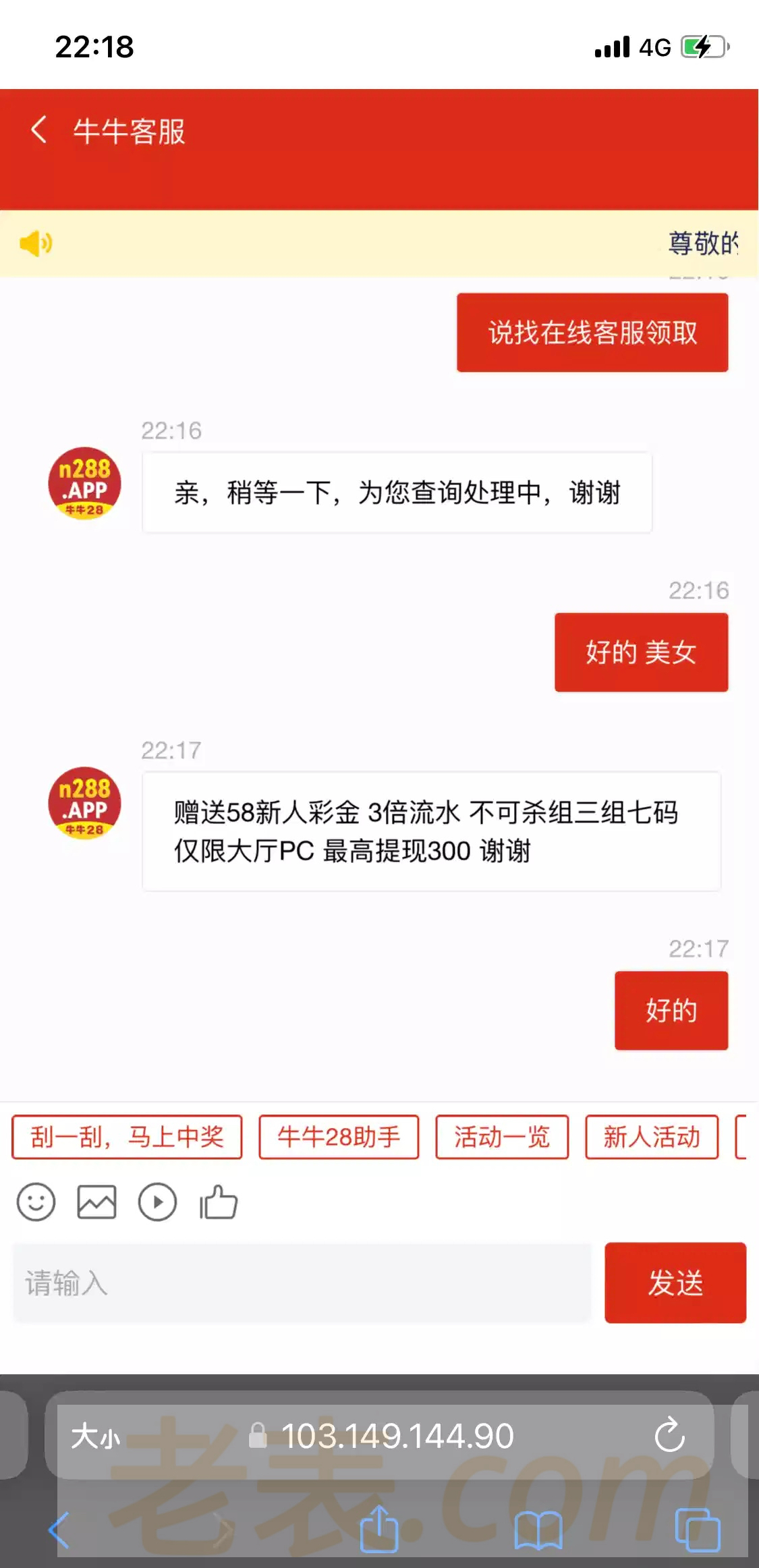 https://麦格菲.cn:38888/admin.html 从这里进去找到牛牛28注册等电话送 我本来是想去批U的 没想到过一会给我来电话送58了 白嫖一百出来